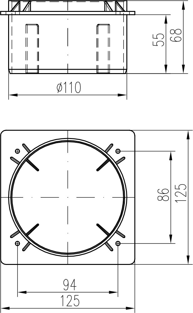 Chuděj > Products > Exterior drainage channels > Spare parts for exterior drainage channels > Bottom connecting D110 of the exterior gutter