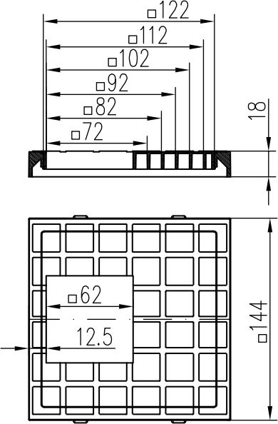Bottom street drain, outlet D110, square cover