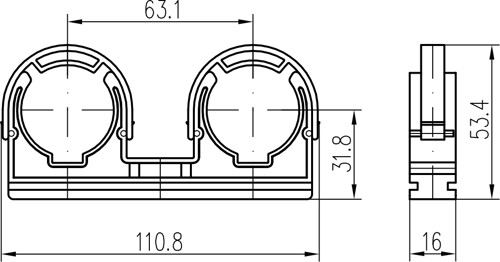 Double clamp D 2 x 32 with frames (50 pieces)