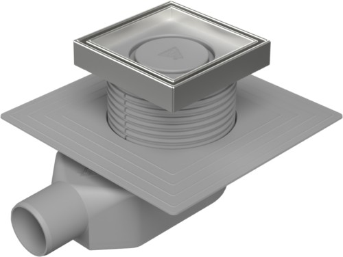 Floor drain-low with side outlet D50, collar, stainless steel frame, grid CERAMICS 125