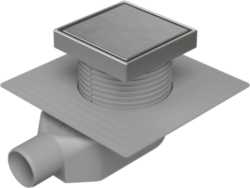 Floor drain-low with side outlet D50, collar, stainless steel frame, grid STEEL 125
