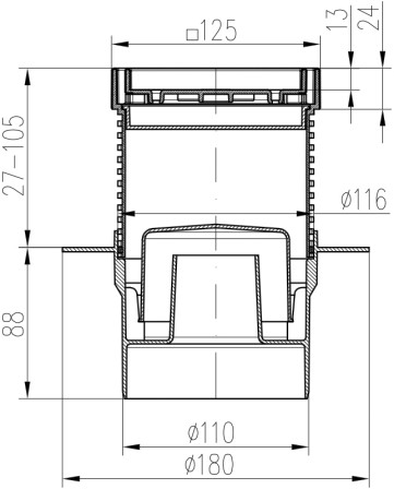 Floor drain with bottom outlet D110, collar, stainless steel frame, grid STEEL 125
