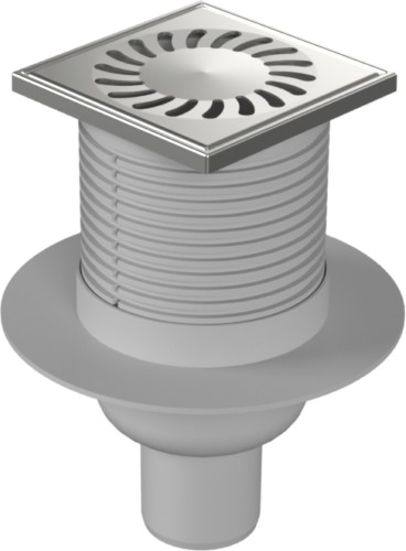 Floor drain with bottom outlet D50, collar, stainless steel frame, grid SUN 100