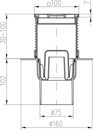 Floor drain with bottom outlet D75, collar, stainless steel frame, grid FACE