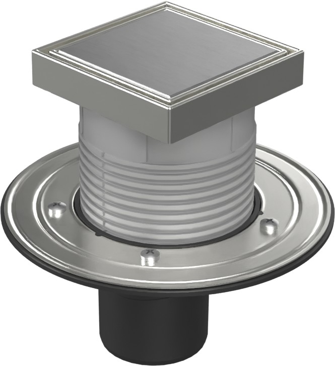 Floor drain with bottom outlet D75, stainless steel flange, frame, grid STEEL 125