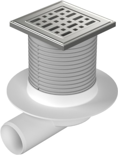 Floor drain with side outlet D50, collar, stainless steel frame, grid SUN 100