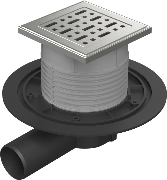 Floor drain with side outlet D50, stainless steel frame, grid FACE 125