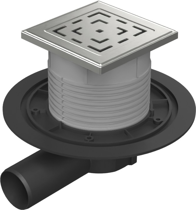 Floor drain with side outlet D50, stainless steel frame, grid LABYRINTH 125