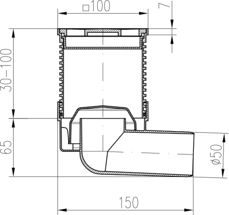 Floor drain with side outlet D50, stainless steel grid LABYRINTH 100