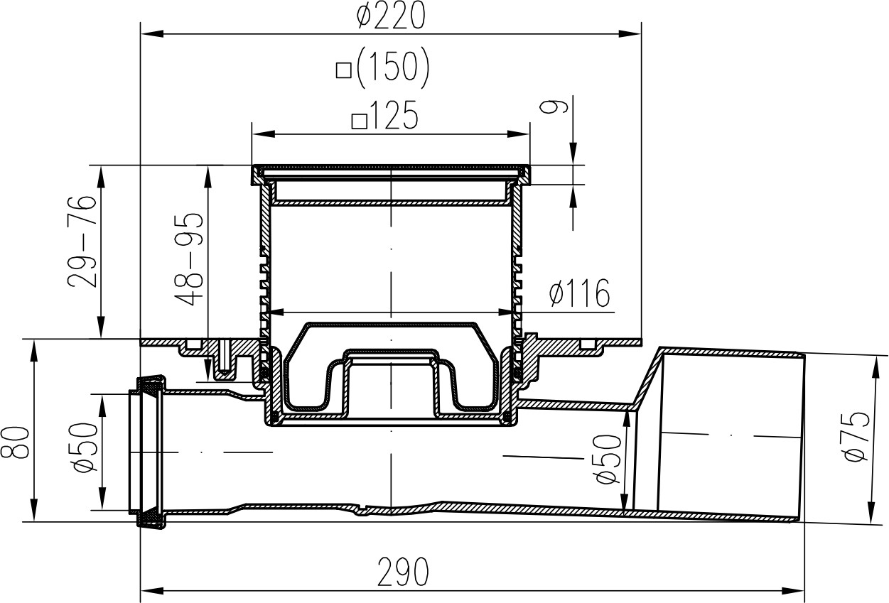 - Waste connection diameter