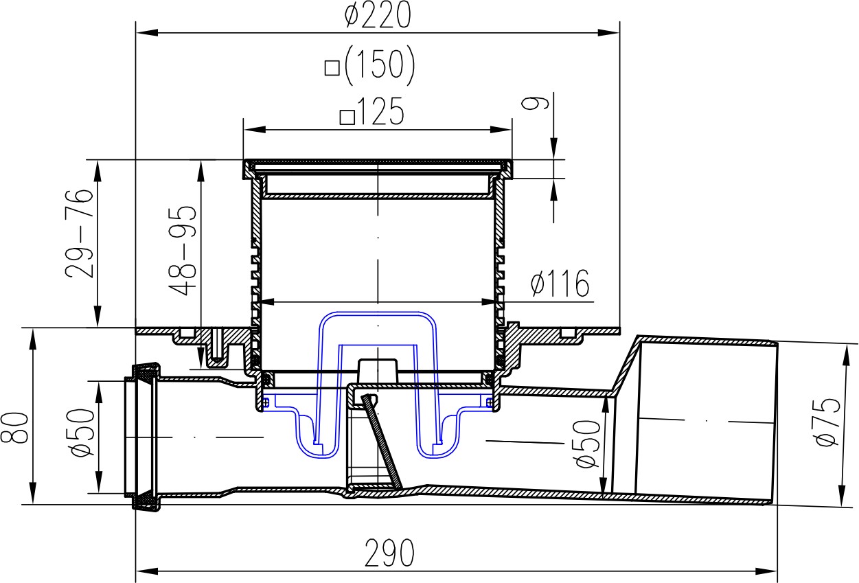 - Waste connection diameter