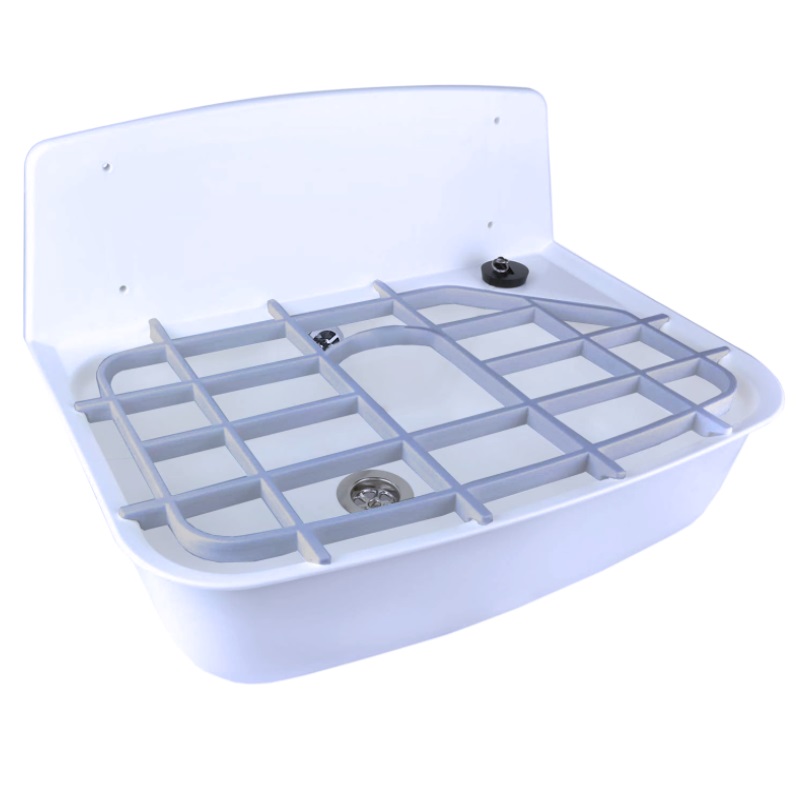 Chuděj > Products > SANITARY ASSORTMENT > Plastic sink with grate and siphon – white