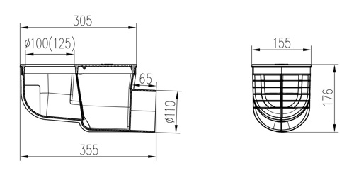 Side street drain, outlet D110, cast iron, for the inlet D125