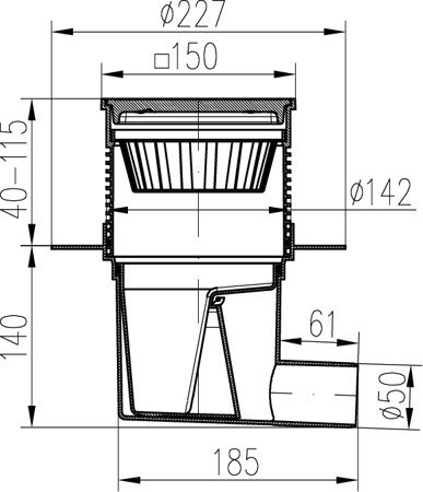 Side street drain, outlet D50, dry flap, collar, plastic grid