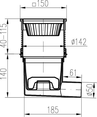 Side street drain, outlet D50, NEPTUNE, cast iron grid