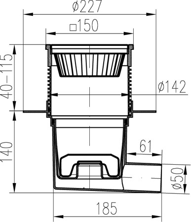 Side street drain, outlet D50, NEPTUNE, collar, plastic grid