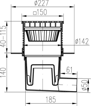 Side street drain, outlet D50, water flap, collar, plastic grid
