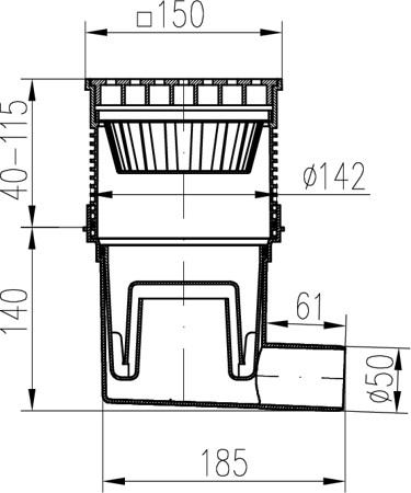 Side street drain, outlet D50, water flap, plastic grid