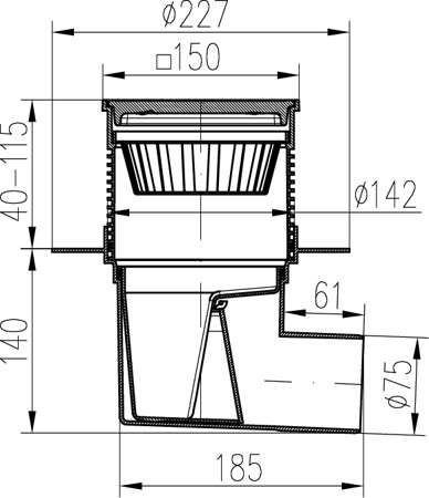 Side street drain, outlet D75, dry flap, collar, plastic grid