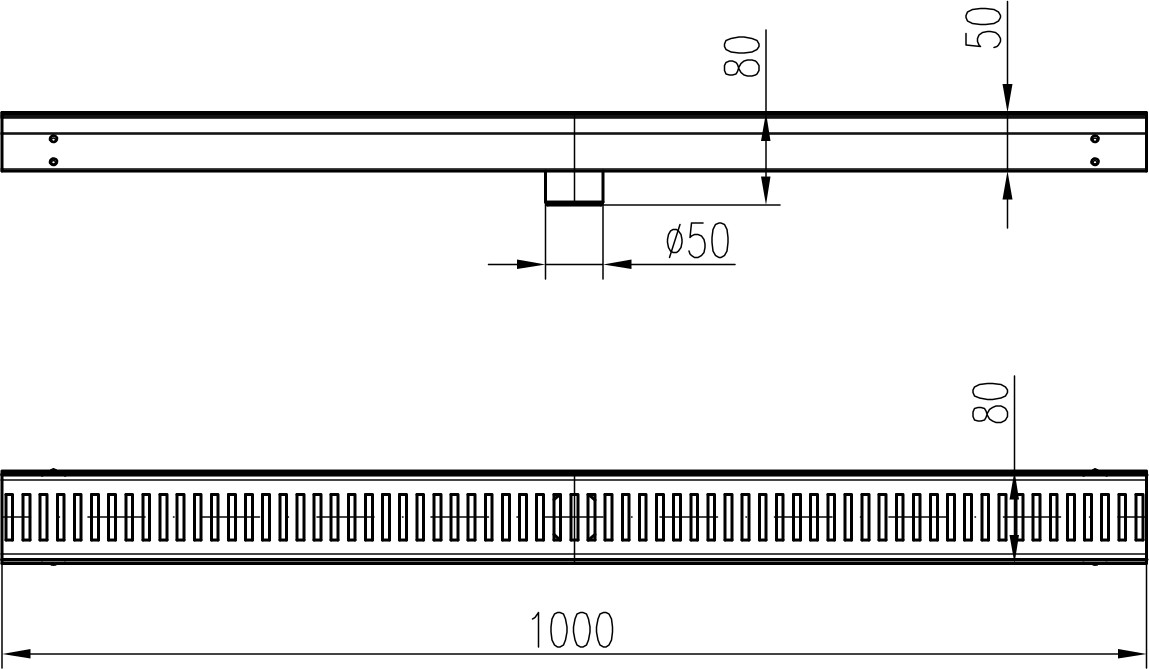 Stainless steel drainage channel COVE with grid, 1000 mm
