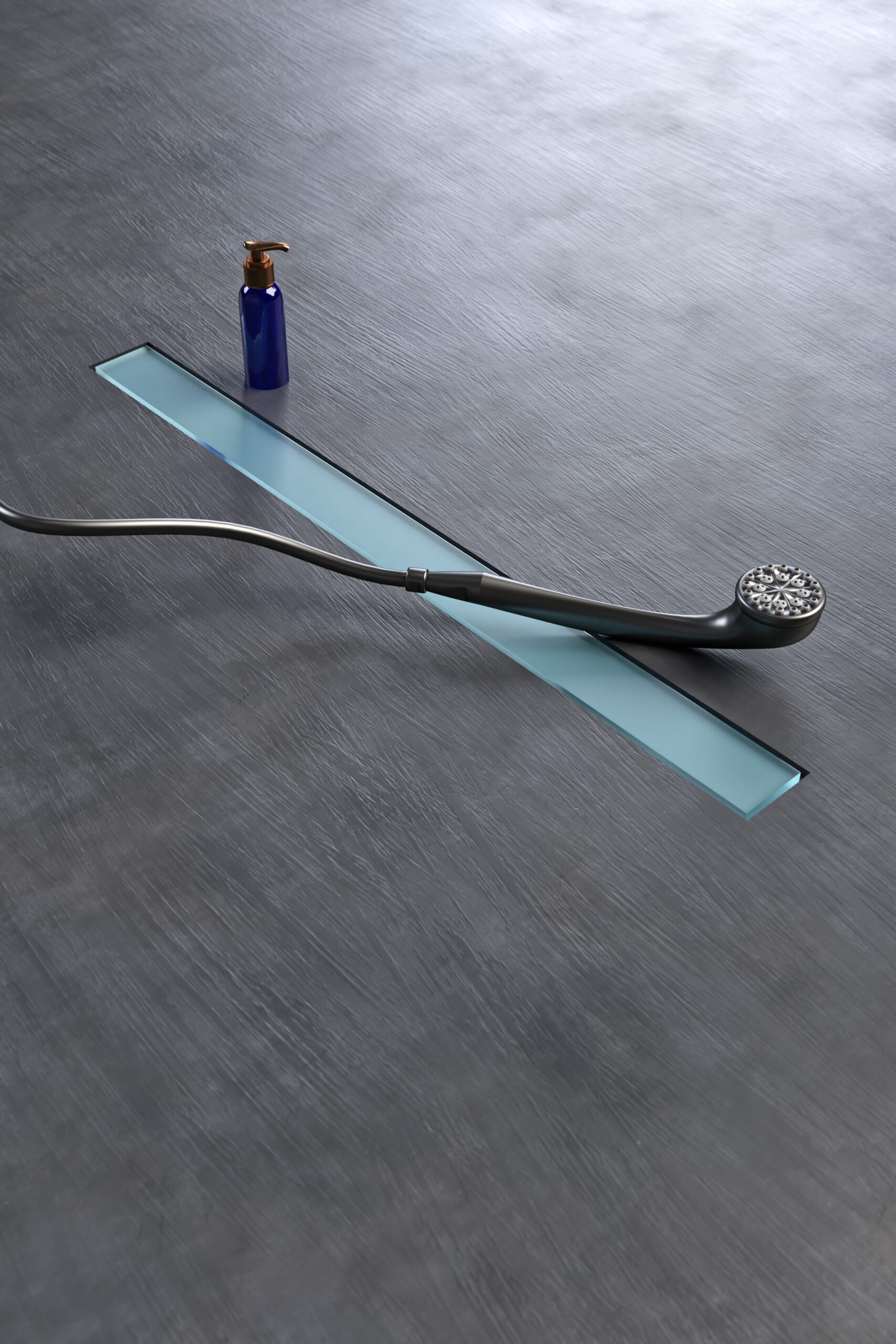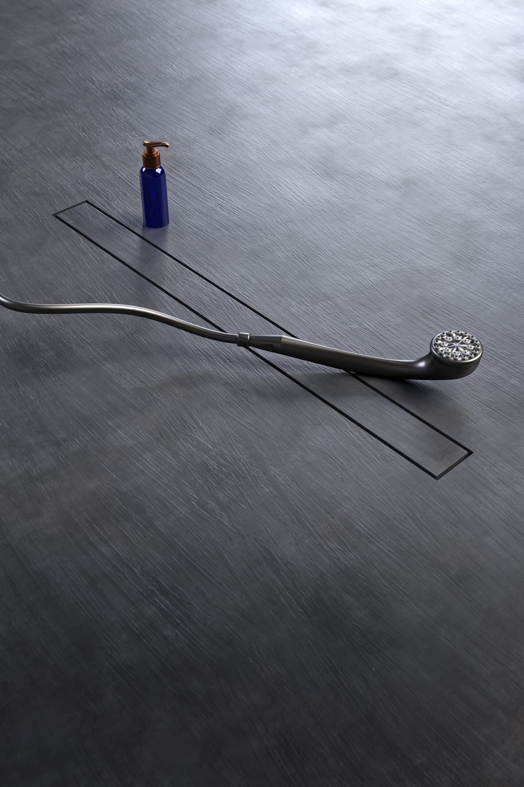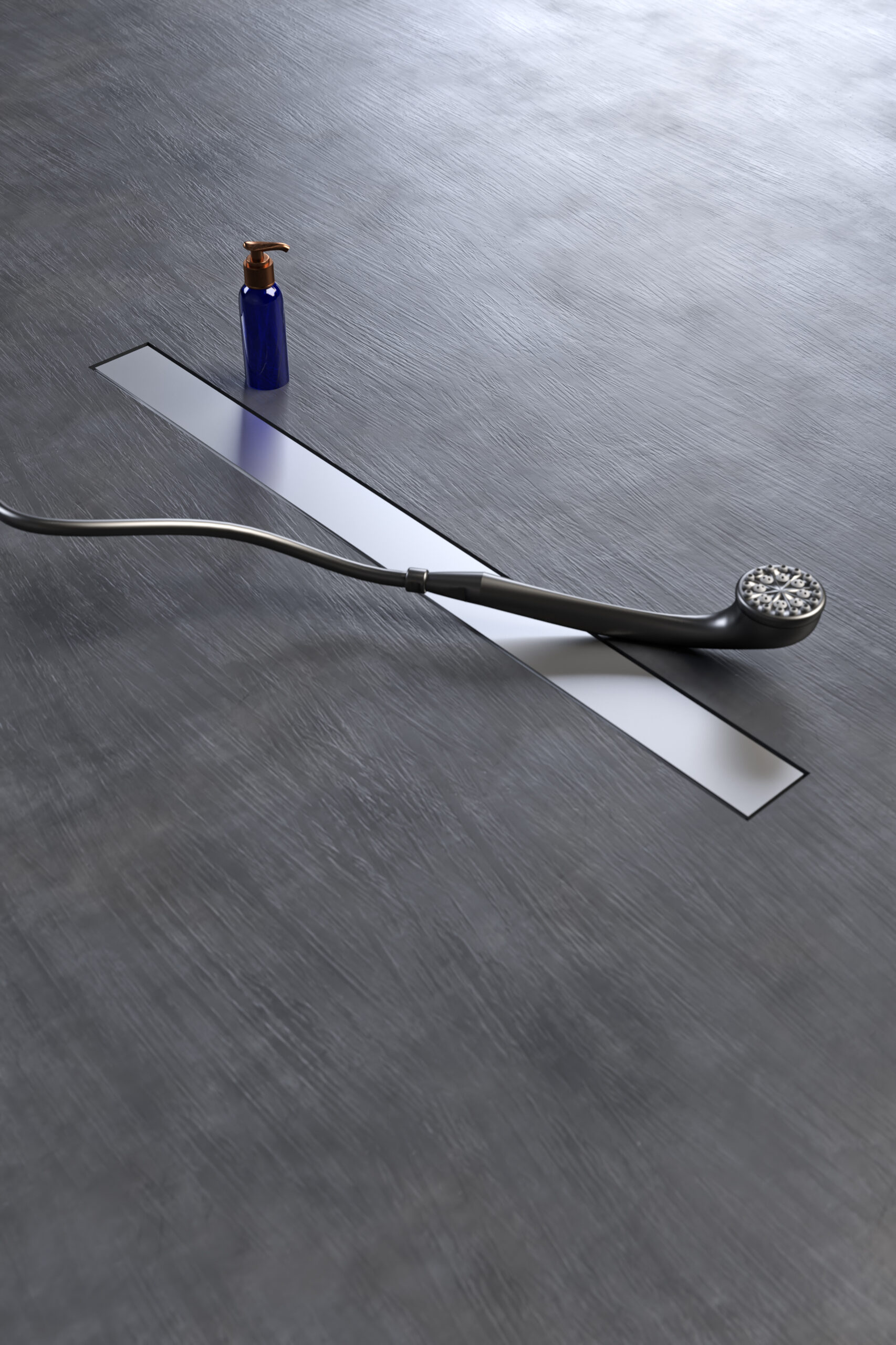 Stainless steel linear floor drain, 900mm, swivel side siphon D50, waterproof membrane