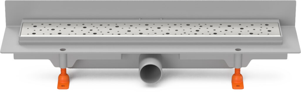 Linear. floor drain to wall side outlet, D40, 450 mm, Drops grid gloss